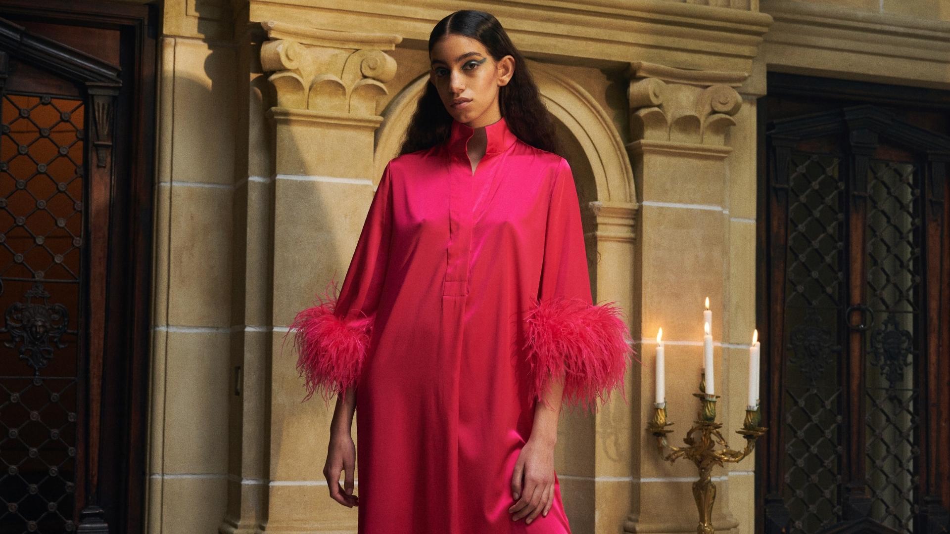 Men for mange kvinder betyder en fest en kjole, og det er her, de magiske effekter af tekstur, glans og udsmykning viser sig. Guld cloqué-jacquard giver en metallisk, skulpturel kvalitet til en kort kjole med store ærmer, mens en guldplettet crepe-gallakjole har en mere flygtig kvalitet. En sort statement fløjlsøjlekjole med sexede blonderudskæringer ned ad siderne er baseret på Deas afsluttende projekt på skrædderskolen - et personligt nik til brandets arv. Strudsefjer pryder manchetterne på silkeærmer med iøjnefaldende effekt, og for den ultimative entré, kan du vælge mellem en smidig sort kaviar-pailletkjole med høj slids i skørtet eller en kort platin glimmer version med overraskelsen af en dyb ryg.