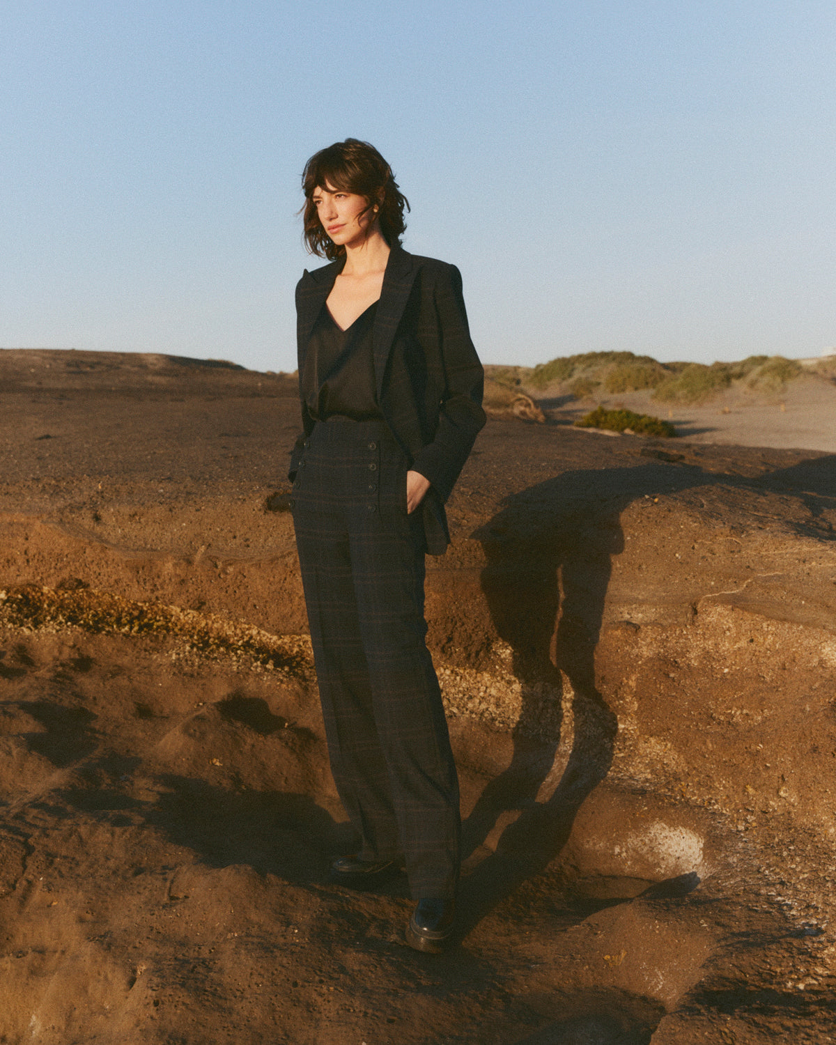 Overtøj og jakkesæt gør et stærkt indtryk denne sæson. Højtaljede, brede bukser med matchende kasseformede jakker i markante striber eller mørke tern har en maskulin, men afslappet stil, og en blazer med stærke skuldre og metal knapper - måske en legende reference til togkonduktøren? - gør et modigt indtryk. Når du træder ud på stationens platform, er oversized frakker i kridtstribet uld eller omslagsversioner i lyserød lige så glamorøse som de er varme. Dunjakker er uventet designet med farverige jaguarprint, og en ærmeløs frakke i chokerende pink ser edgy og cool ud over strik. En kort, men meget bred jumper i en mohairblanding har en enkelt broderet rose på forsiden for at tilføje et romantisk touch til hyggebeklædning. Andre steder har en tekstureret sweater store flæser på skuldrene for at tilføje en følelse af drama.