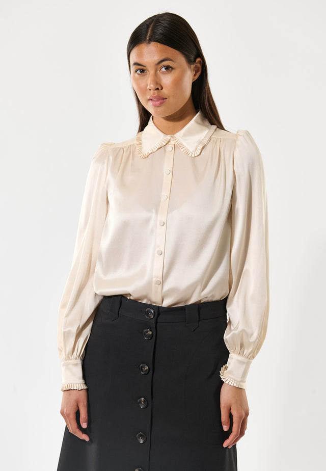 Små læg i porcelæn løber rundt om kraven og ærmerne på denne porcelæn silkekjorte og skaber en delikat og smuk detalje, der løfter den til noget særligt. Skjortens pasform er normal, og den har lange ærmer, der giver en afslappet elegance.
