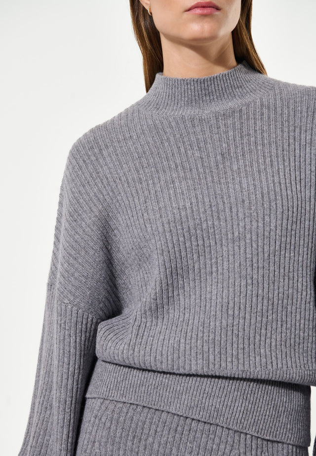 Denne smukke alpakablandingsstrik i grå melange er let at have på og løstsiddende. Den er kortskåret og vid i kroppen, har dybe ærmer og en rullekrave. Brug den med jeans om dagen, eller klæd dig op med en nederdel til kølige aftener.