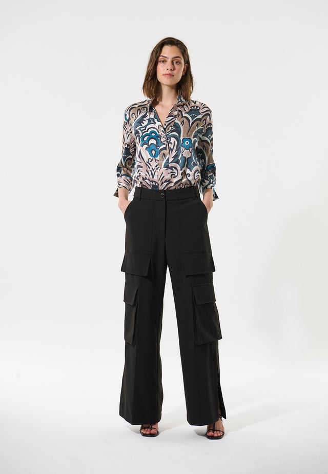 Med deres mange cargo lommer har disse bukser et sejt, urbant vibe. Lavet af sort viskoseblanding crepe, er de figursyede ved hoften, inden de falder ud i et bredt ben med en presset midterfold.