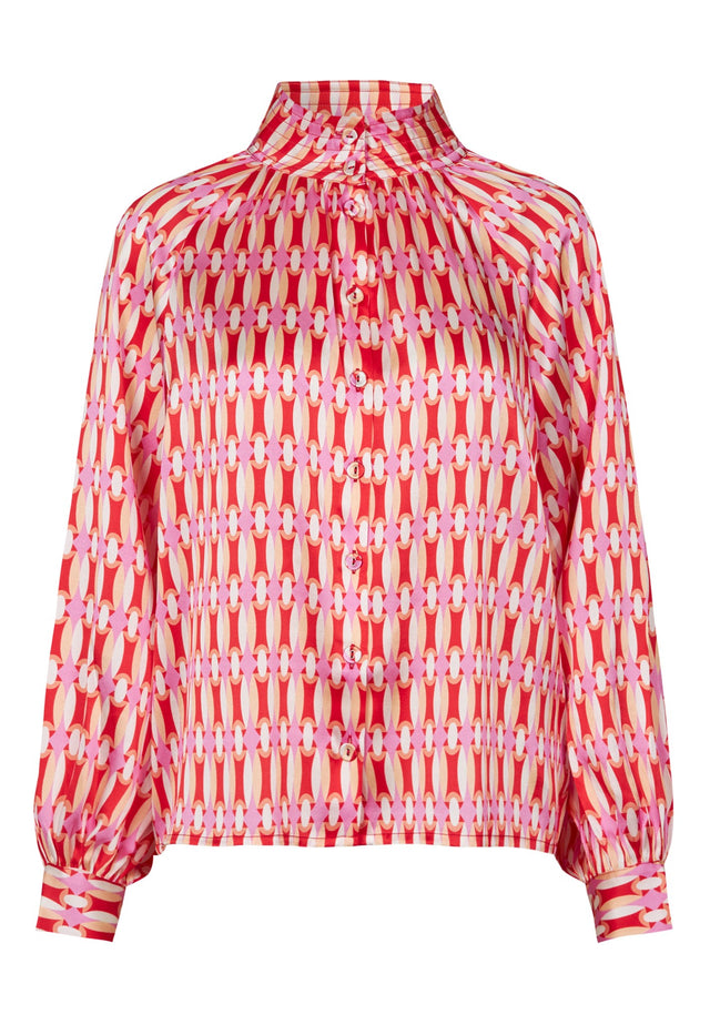 Små læg samler kroppen af denne printede silkebluse med høj ståkrave, mens voluminøse ærmer tilføjer til den chikke silhuet. Det flerfarvede, lyse blomsterprint gør blusen perfekt til både dag og aften.