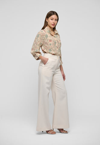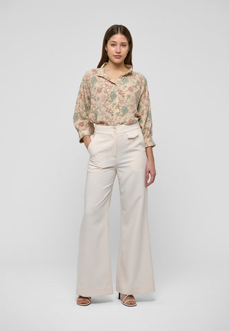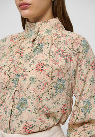 Med sit print af bløde, farvede blomster er denne silkeskjorte både afslappet og elegant. Små læg foran og bagpå samler stoffet op i den højtsiddende krave med flerfoldssyninger, og skjorten har fyldige 3/4-ærmer.