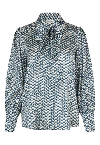 En silkebluse er altid et stilfuldt valg, og denne version med et lille grafisk print er både smart og elegant. Blusen har en almindelig pasform, fulde ærmer med lange manchetter og et aftageligt matchende tørklæde i nakken, som kan bindes på forskellige måder for et personligt touch.