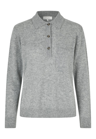 Intet slår den luksuriøse følelse af ren kashmir, og denne stilfulde poloshirt føles lige så godt, som den ser ud. Med en almindelig pasform og en blød gråmeleret farve kombinerer den klassisk elegance med moderne detaljer. Toppen har en moderigtig krave, en påsyet brystlomme og et lille ensfarvet logo broderet i nakken.