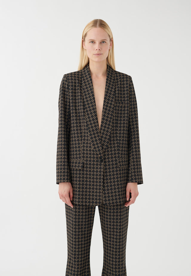Løst siddende og nem, denne baggy jakke med krave og enkelt knaplukning er indbegrebet af afslappet elegance. Det lille grafiske print i afdæmpede farver er sofistikeret og stilfuldt. Kombiner med matchende bukser for at skabe et stilfuldt sæt.