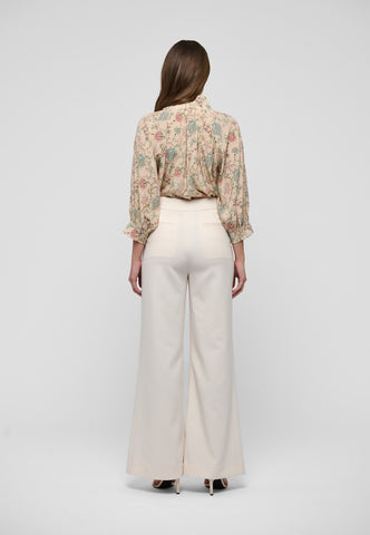 Med sit print af bløde, farvede blomster er denne silkeskjorte både afslappet og elegant. Små læg foran og bagpå samler stoffet op i den højtsiddende krave med flerfoldssyninger, og skjorten har fyldige 3/4-ærmer.