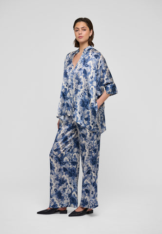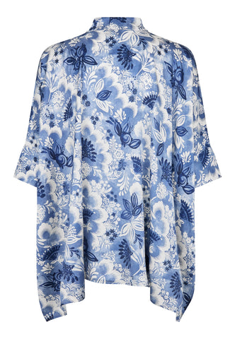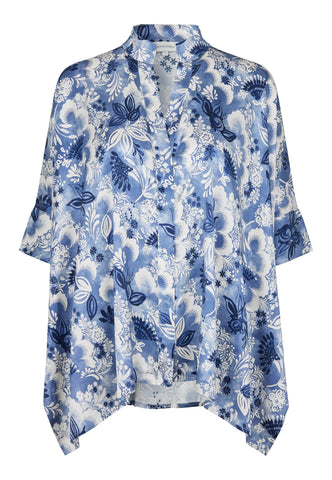 Oversized og super let at have på, denne meget brede bluse i sort silke har 3/4 lange ærmer, knaplukning foran og en lille standkrave. Den ser fantastisk ud med jeans eller med en nederdel til aften.