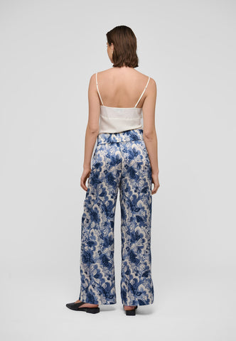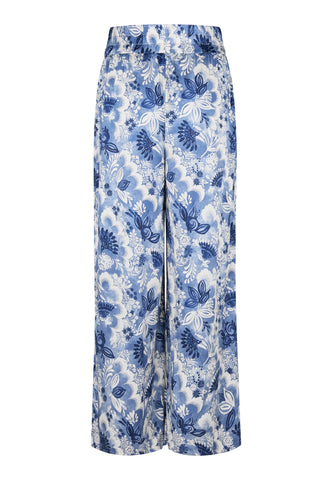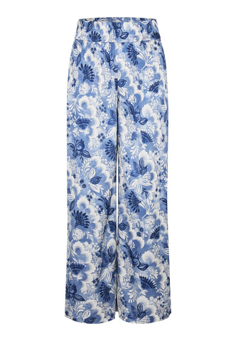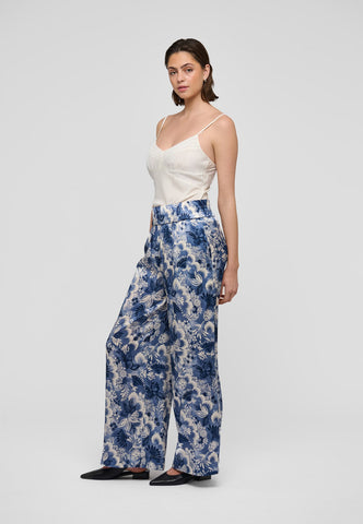 Bukser med vidde i silke har en tidløs sommerstil, og denne model i blomsterprint med en bred elastisk talje er et perfekt eksempel. Brug dem med en enkel top eller en strik for et uanstrengt, stilfuldt look.
