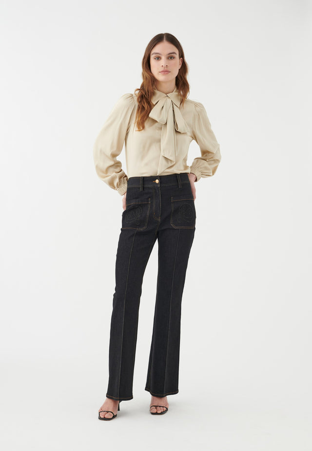 Elegante jeans i en flot mørkeblå farve med broderet logo på forlommerne.