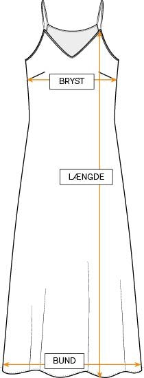 Illustrationen viser hvad denne style måler liggende fladt. For at finde den rigtige størrelse til dig, kan du evt. sammenligne disse mål med en lignende style i din garderobe som passer dig godt. Der kan være små udsving i målene på grund af produktionsprocessen.