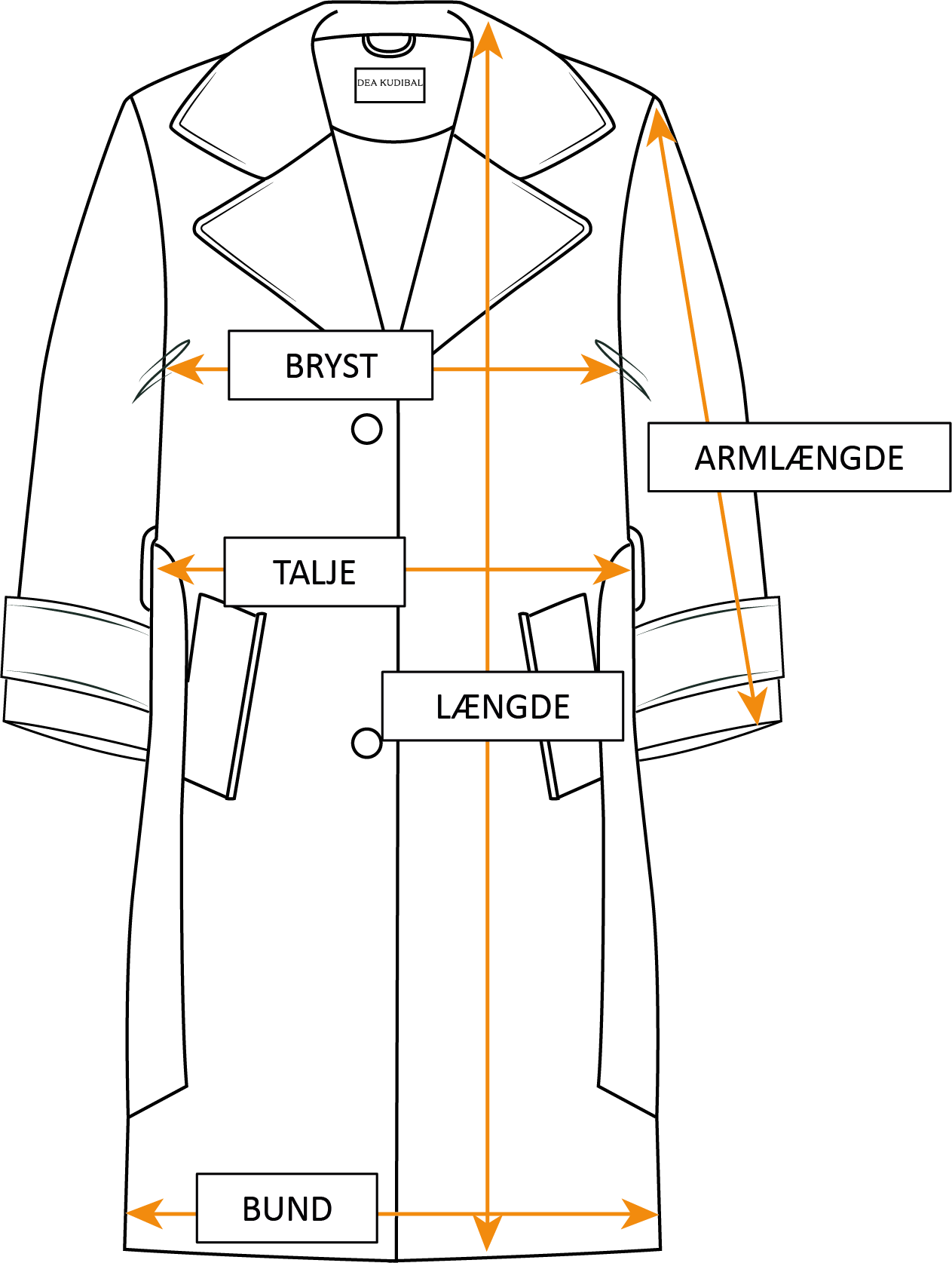 | Ærmelængde | 52 | 53 | 54 | 55 | 56 | 57 | 58 |