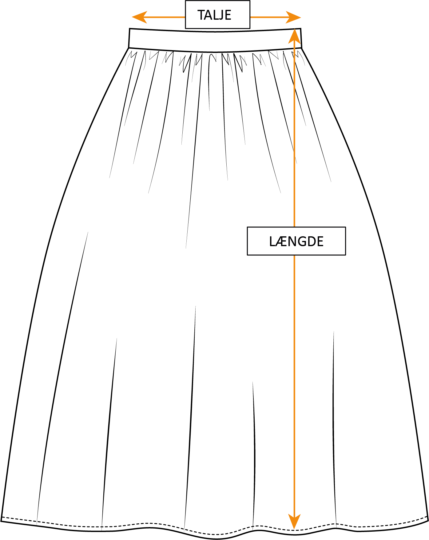 Illustrationen viser hvad denne style måler liggende fladt. For at finde den rigtige størrelse til dig, kan du evt. sammenligne disse mål med en lignende style i din garderobe som passer dig godt. Der kan være små udsving i målene på grund af produktionsprocessen.