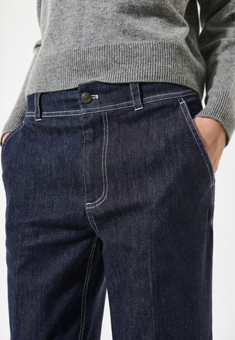 Disse denimbukser er et moderne og stilfuldt alternativ til jeans og har lige ben og sidder tæt til hofterne. Hvide kontrastfarvede dobbeltnålssyninger giver et moderne og funktionelt udtryk, mens de to baglommer med broderet logo tilføjer et diskret brandpræg.