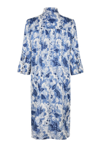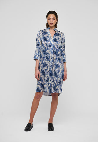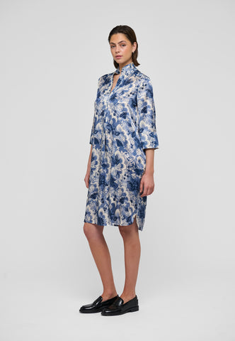 En af Dea Kudibals mest populære styles. Denne løst siddende kjole i midilængde er perfekt til sommerens afslappede liv. Kimono udskæringen og kraven giver den en sofistikeret elegance, mens de dybe ærmer med dækknapper har et afslappet udtryk. Denne stilfulde version er lavet i silke med et dramatisk, stort blomsterprint.
