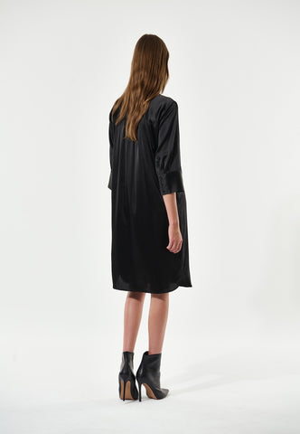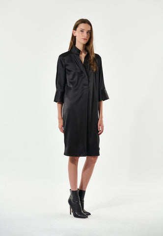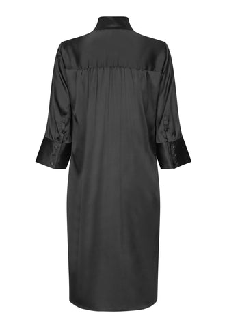 En af Dea Kudibals mest vedvarende populære modeller, er denne lette pasform midikjole perfekt til sommerlivet. Kimonohalsudskæringen og kraven giver den en sofistikeret elegance, mens de dybe ærmer med dækknapper tilfører et afslappet præg. Denne stilfulde version kommer i sort silke.