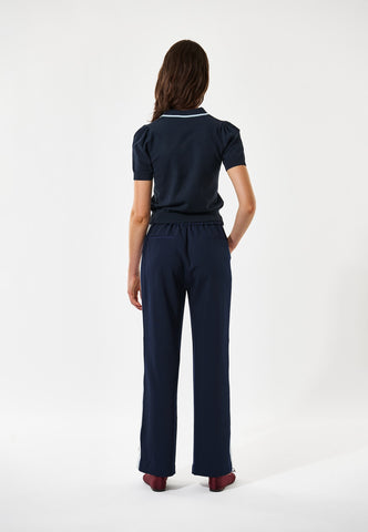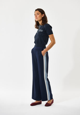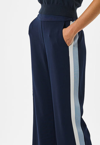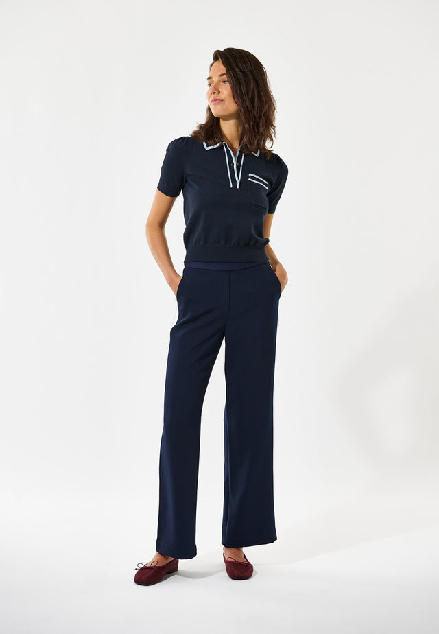 Nem at have på, men stadig stilfuld og elegant: disse pull-on bukser med lige ben har en løs pasform, der gør dem perfekte både til dag og aften. Fremstillet i et stretchmateriale i dyb marineblå med elastik i linningen bagtil og to paspolerede baglommer.