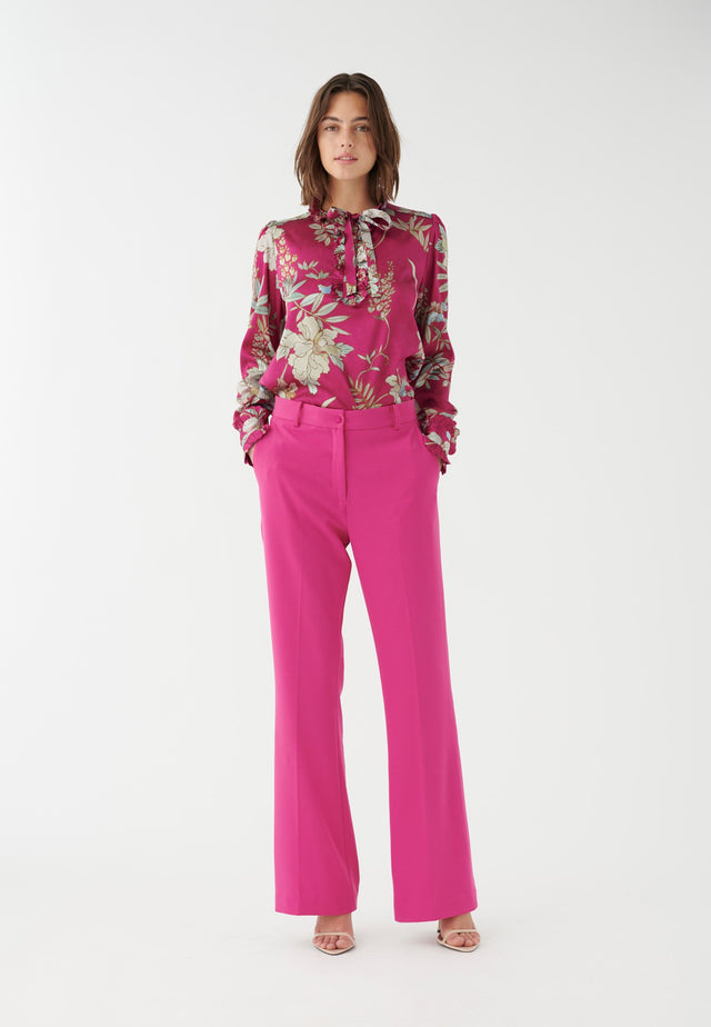 Disse flared bukser har et retro-look, der altid er stilfuldt. Den kraftige pink farve ser fantastisk ud, når den bæres med en skjorte eller strik, og skaber et markant sæt, når den kombineres med den matchende blazer.