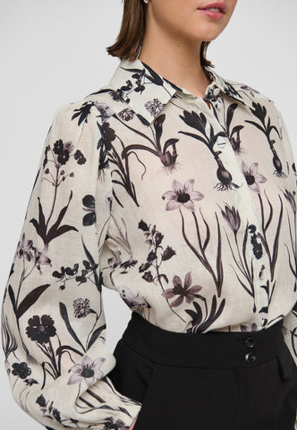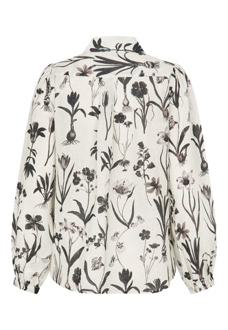 Fyldige, voluminøse ærmer giver denne smukke bluse med almindelig pasform et feminint og elegant udtryk. Det fine linnedstof har en smuk kvalitet, og det botaniske print i sort fremstår sofistikeret. Elastikmanchetter giver blusen et afslappet og ubesværet look.