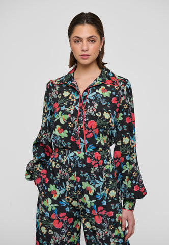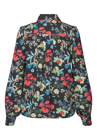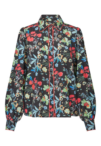 Markant rød piping løber langs kraven, over skulderen og ned langs fronten på denne silkeskjorte med blomsterprint og skaber et grafisk, moderne twist på et klassisk design. Skjorten har almindelig pasform, fyldige ærmer og skjult knaplukning.